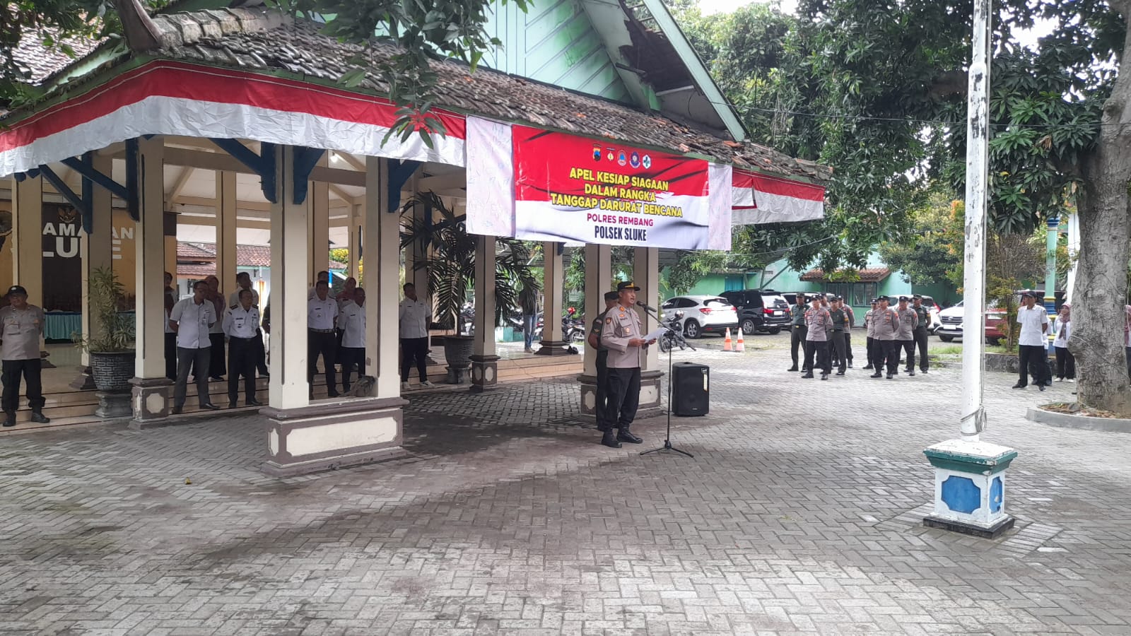 Dalam amanatnya, Kapolsek Sluke AKP Marjito, S.H menyampaikan bahwa apel kesiapsiagaan ini bertujuan untuk mempererat sinergitas antarinstansi di Kecamatan Sluke, sekaligus memastikan seluruh unsur siap siaga menghadapi segala kemungkinan bencana alam.