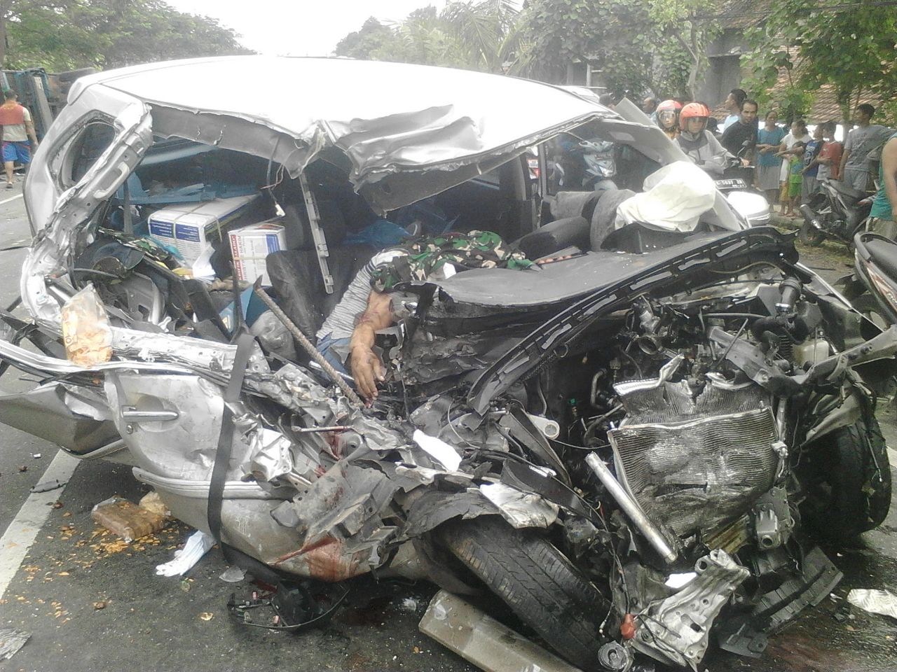 Pengemudi avanza diduga tidak mampu menyalip Pajero, hingga menabrak truk yang dari arah depannya. Sopir avanza meninggal di tempat karena kerasnya benturan dan body avanza ringsek tak berbentuk.