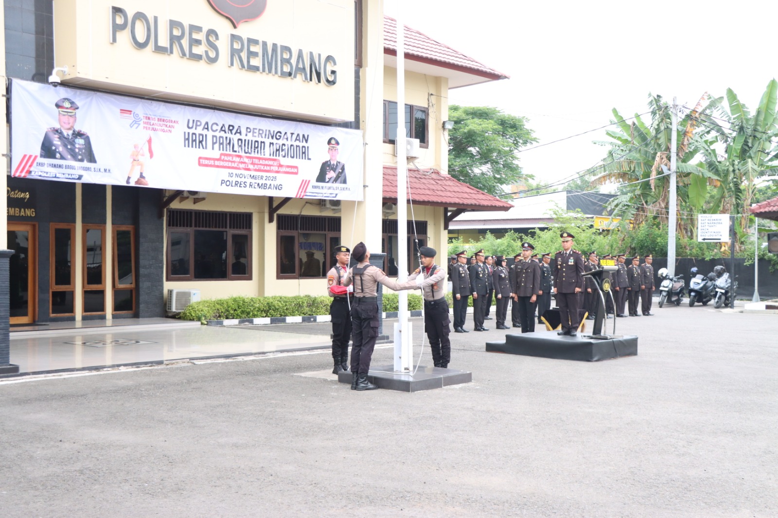 Lebih lanjut, Wakapolres menekankan pentingnya nilai rela berkorban, persatuan, dan pantang menyerah sebagaimana ditunjukkan para pahlawan bangsa. Ia berharap semangat tersebut dapat menjadi motivasi personel Polres Rembang dalam menjaga kamtibmas serta memberikan pengabdian terbaik kepada bangsa dan negara.