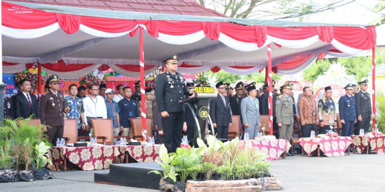 REMBANG – Polres Rembang Polda Jateng pagi ini menggelar upacara peringatan Hari Ulang Tahun (HUT) Bhayangkara ke-79 tahun 2025 dengan penuh khidmat, Selasa (1 Juli 2025).