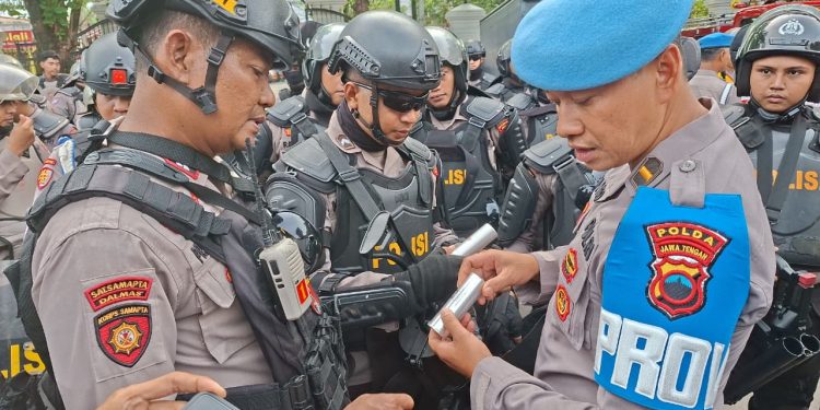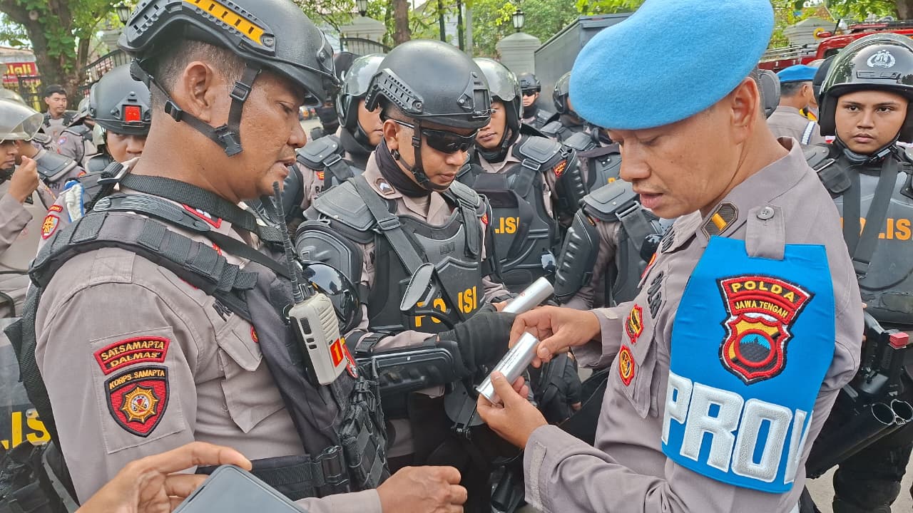 Pengecekan dipimpin langsung oleh Kabid Propam Polda Jateng Kombes Pol Syaiful Anwar usai apel kesiapan pengamanan di halaman Kantor Bupati Pati pada Jumat pagi, (31/10/2025). Sebanyak 3.379 personel gabungan dari satuan Brimob, Sabhara, Lalu Lintas, Intel, Reserse, dan fungsi lainnya mengikuti pengecekan tersebut.