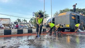 “Kami lakukan rekayasa lalu lintas agar tidak terjadi penumpukan kendaraan dan agar proses pembersihan bisa berjalan dengan aman dan tertib,” kata AKP Dwi Kristiawan.