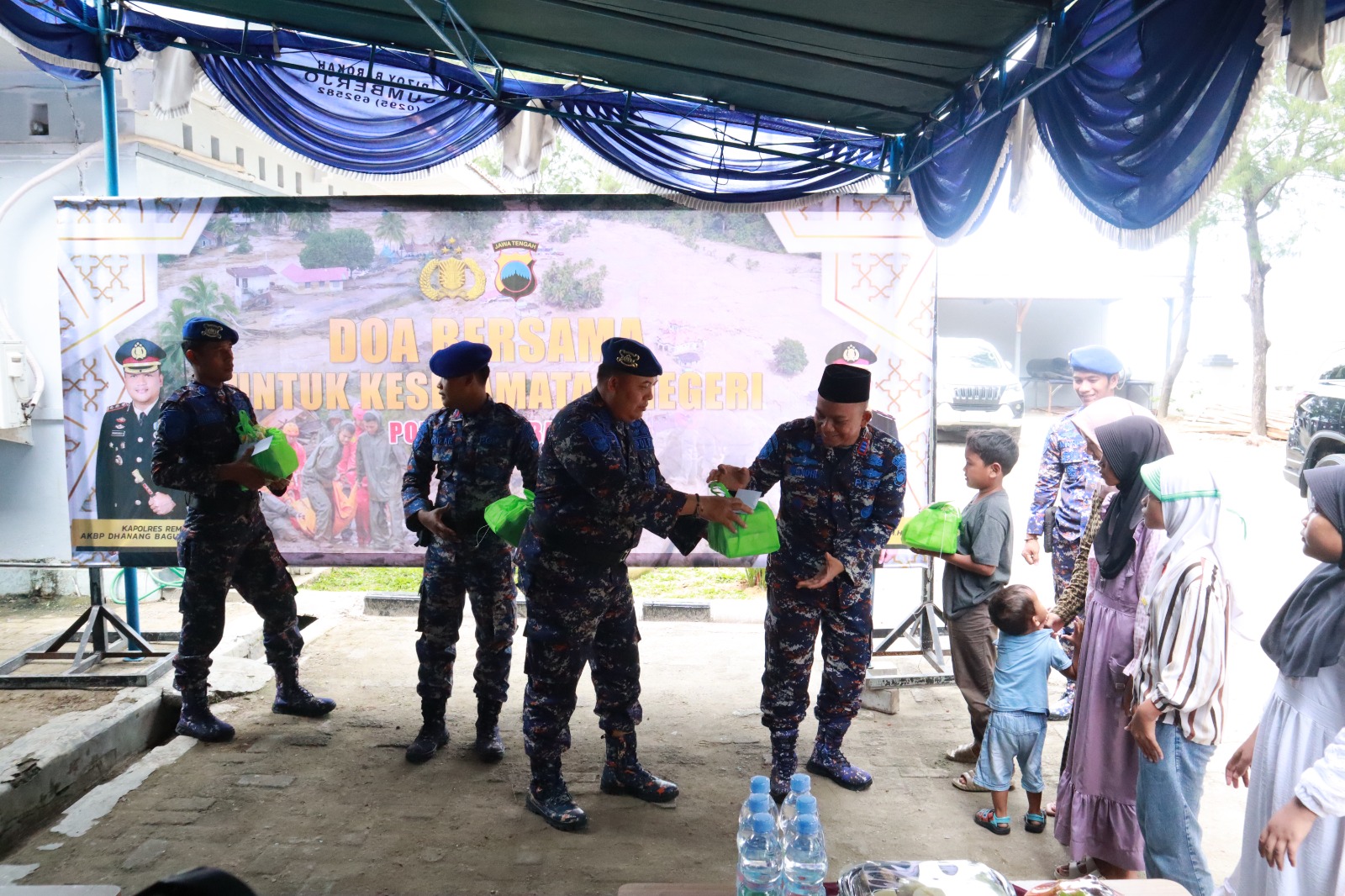 Dalam kegiatan tersebut, jajaran personel Polres Rembang bersama tokoh agama dan masyarakat mengikuti rangkaian doa dengan khidmat.
