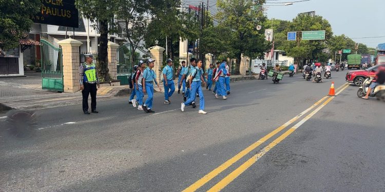Petugas terlihat berjaga di persimpangan dan ruas jalan yang padat, memberikan pelayanan prima kepada masyarakat dengan membantu penyeberangan, menertibkan pengendara yang tidak tertib, serta memberikan imbauan langsung agar selalu mengutamakan keselamatan.