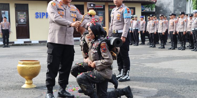 REMBANG – Kapolres Rembang memimpin langsung Upacara Penutupan Tradisi Pembaretan Bintara Remaja Polres Rembang Tahun 2025 yang dilaksanakan di halaman Mapolres Rembang, Senin (15/12/2025).