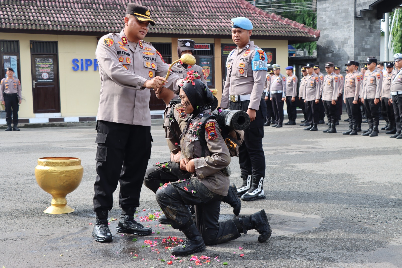 Dalam amanatnya, Kapolres Rembang AKBP Dhanang Bagus Anggoro, S.I.K.,M.H. menegaskan bahwa tradisi pembaretan bukan sekadar seremonial, melainkan momentum untuk membentuk karakter personel Polri yang berintegritas, profesional, dan bertanggung jawab dalam mengemban tugas melayani, melindungi, dan mengayomi masyarakat.