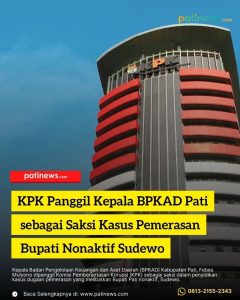 [image: 45 Template Patinews (43).jpg] KPK Panggil Kepala BPKAD Pati sebagai Saksi Kasus Pemerasan Bupati Nonaktif Sudewo