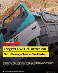 PATI — Insiden longsor terjadi di lokasi tambang galian C di Desa Pakem, Kecamatan Sukolilo, Kabupaten Pati, Kamis siang (30/4/2026). Peristiwa ini mengakibatkan satu pekerja meninggal dunia dan satu lainnya mengalami luka-luka.