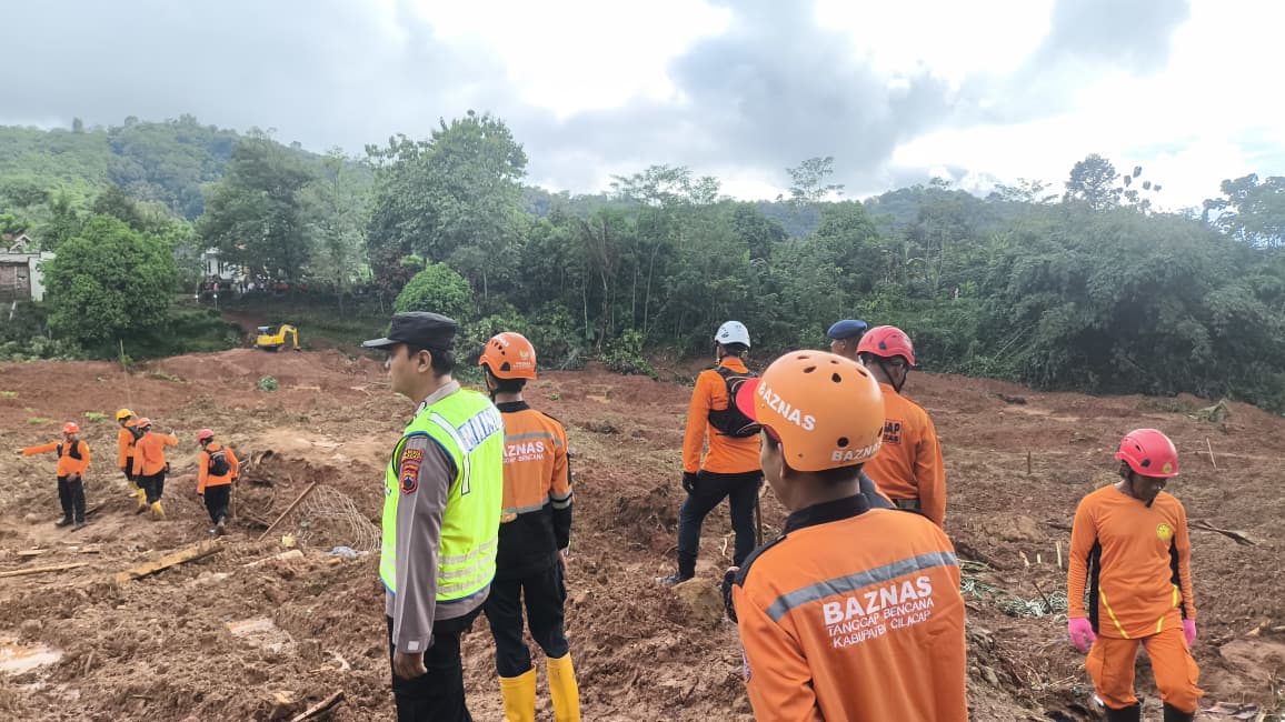 Polda Jateng, Cilacap | Kerja keras tim SAR gabungan yang terdiri dari Polresta Cilacap, Polda Jawa Tengah, Basarnas, TNI, BPBD, serta relawan yang dibantu Unit K9 akhirnya membuahkan hasil. Hingga Sabtu (15/11/2025) sore, petugas berhasil menemukan 7 korban tewas dari balik material longsor di desa Cibeunying, Kec. Majenang, Kab. Cilacap. Total korban tewas yang ditemukan hingga saat ini 10 orang, membuat petugas masih berjuang menemukan 13 warga lainnya yang dilaporkan hilang.