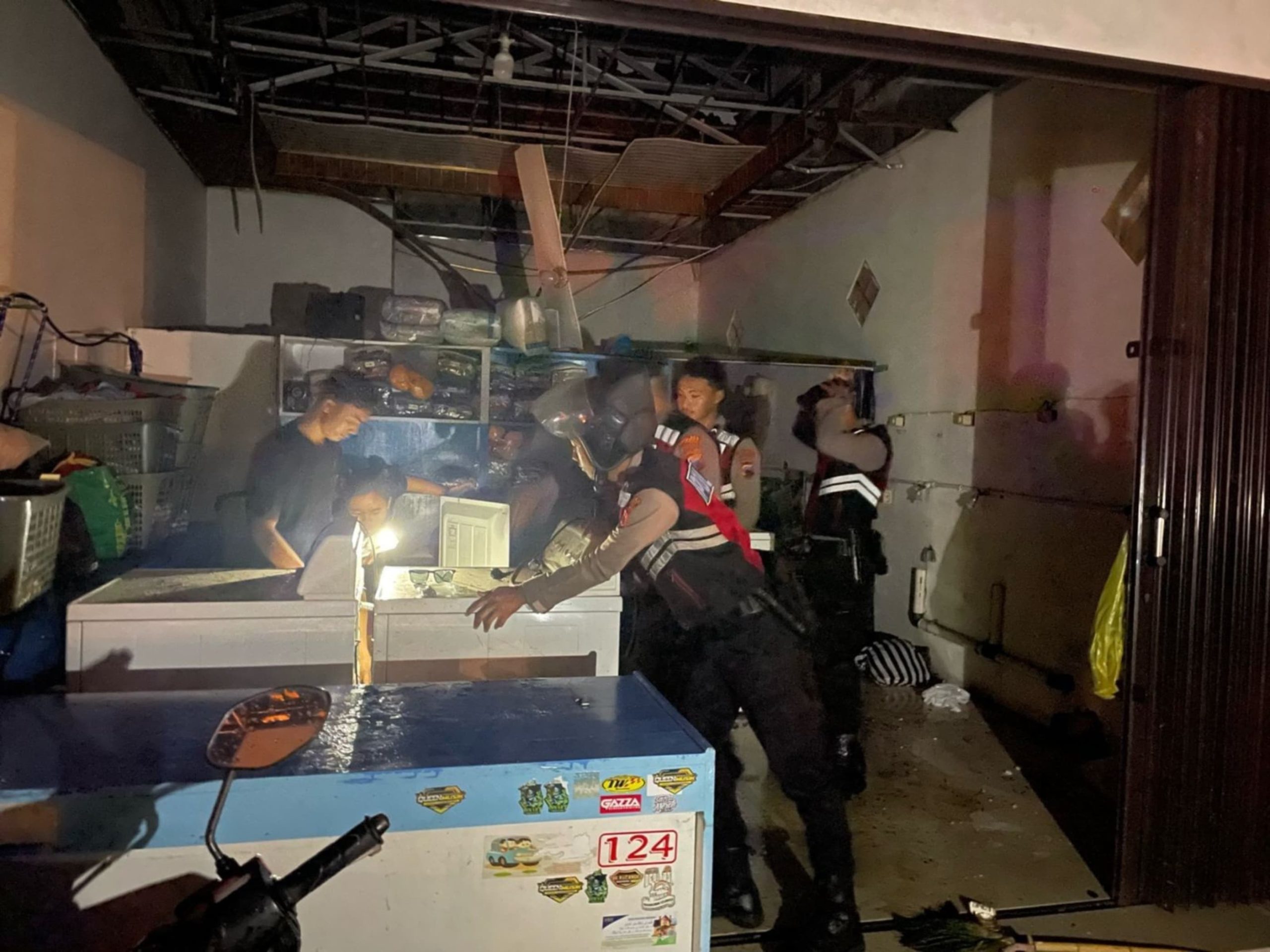 “Personel kami langsung mendatangi lokasi begitu menerima laporan dari warga. Bersama unsur terkait, kami bergotong-royong membantu warga membersihkan sisa-sisa material bangunan yang rusak agar situasi segera pulih.” Kasihumas AKP Suwoto.