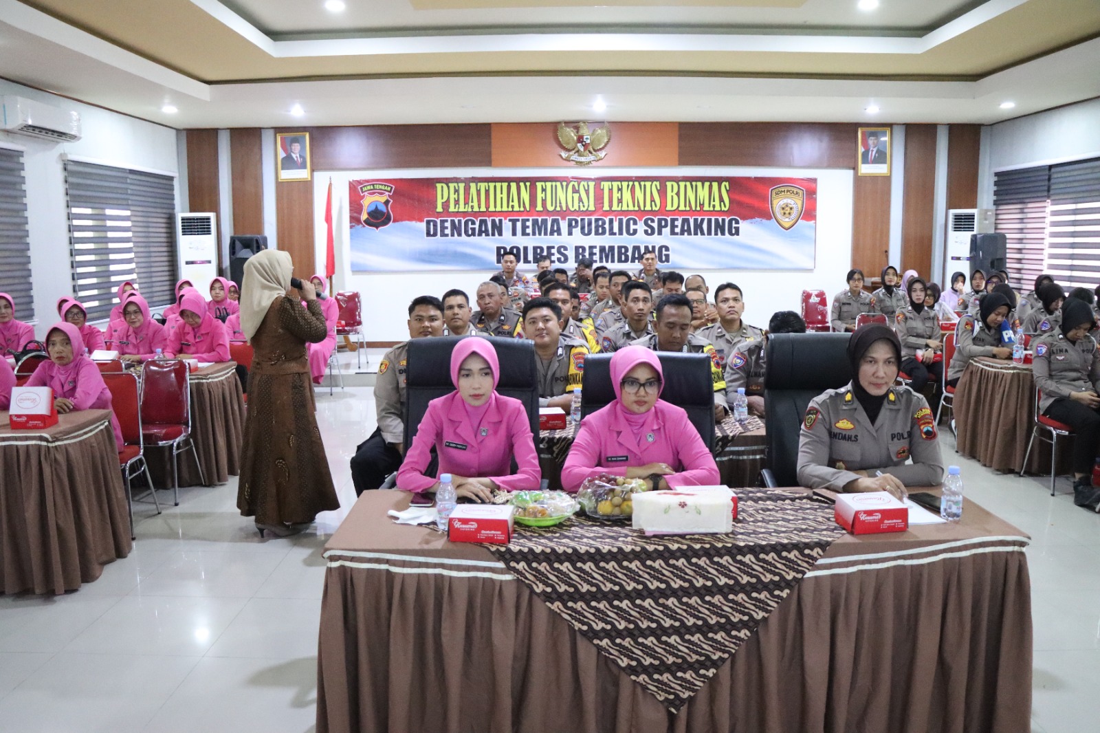 Pelatihan ini diikuti oleh para Polwan, Bhayangkari, serta para Bhabinkamtibmas jajaran Polres Rembang. Kegiatan tersebut bertujuan untuk meningkatkan kemampuan komunikasi, khususnya keterampilan berbicara di depan umum, sehingga para personel mampu menyampaikan pesan-pesan Kamtibmas kepada masyarakat secara lebih efektif, menarik, dan mudah dipahami.