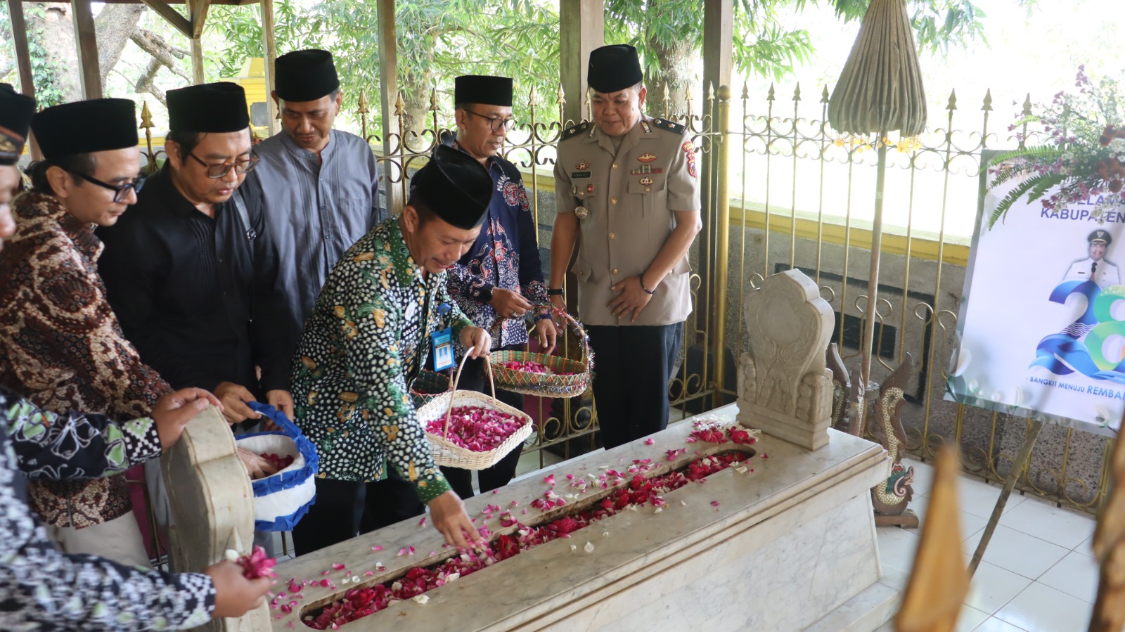 Kegiatan ini dilaksanakan bersama jajaran Forum Koordinasi Pimpinan Daerah (Forkopimda) Kabupaten Rembang sebagai bentuk penghormatan terhadap jasa para tokoh pejuang dan pendiri daerah.