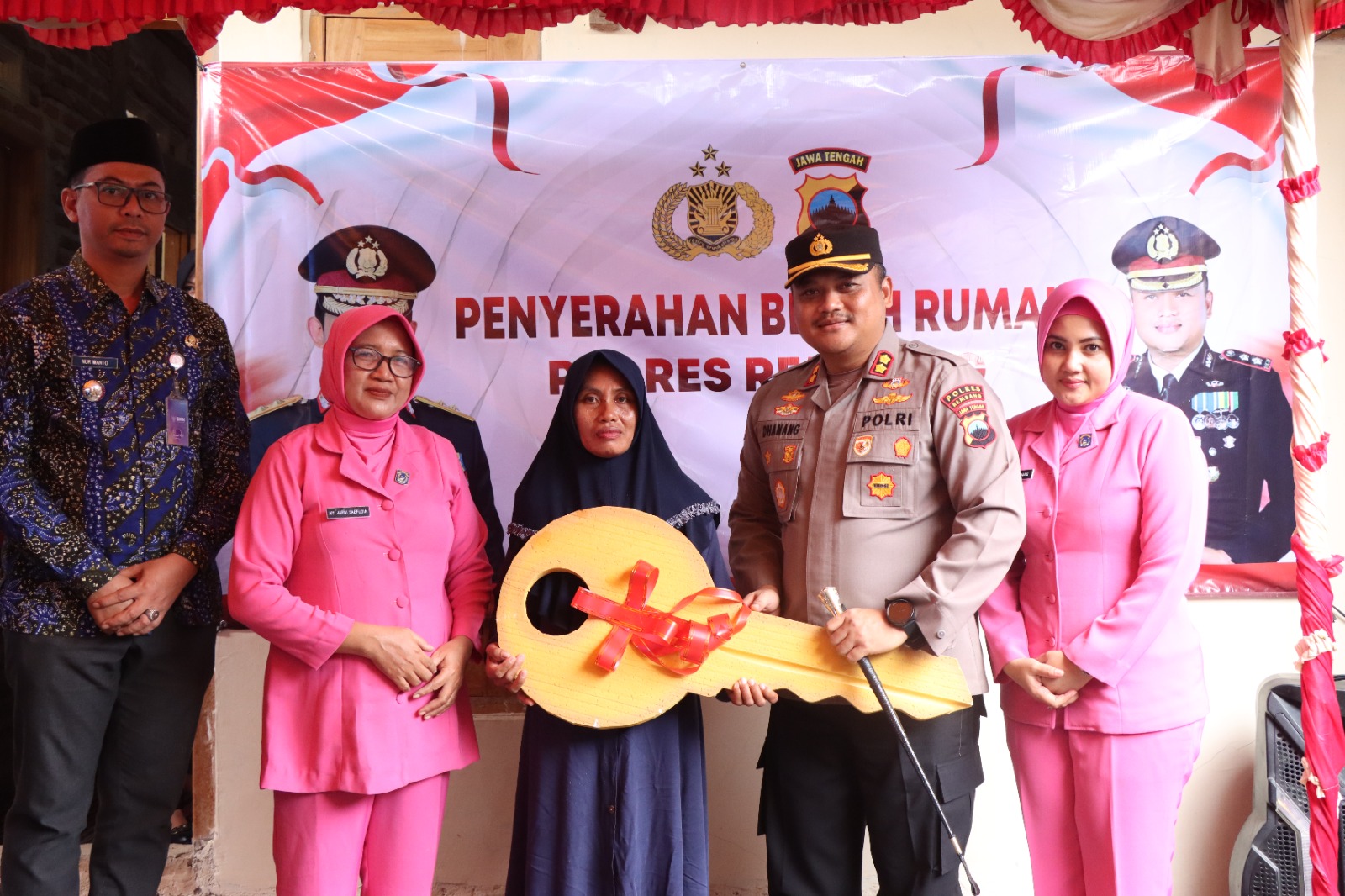 “Agenda hari ini adalah penyerahan kunci kepada keluarga bapak Juri yang kemarin rumahnya sempat roboh akibat diterpa angin kencang. Kami dari Polres Rembang melaksanakan pembangunan kembali rumahnya,” ucap Kapolres.