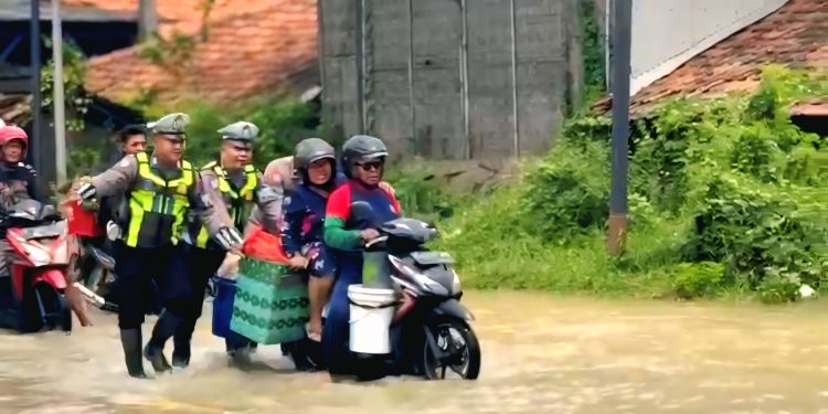 PATI – Polresta Pati terus berada di garis terdepan dalam upaya penanganan banjir di Kecamatan Batangan, Senin (27/10/2025). Curah hujan tinggi yang mengguyur wilayah selatan Batangan serta luapan sungai dan saluran irigasi menyebabkan sejumlah desa terdampak genangan air dengan ketinggian bervariasi.