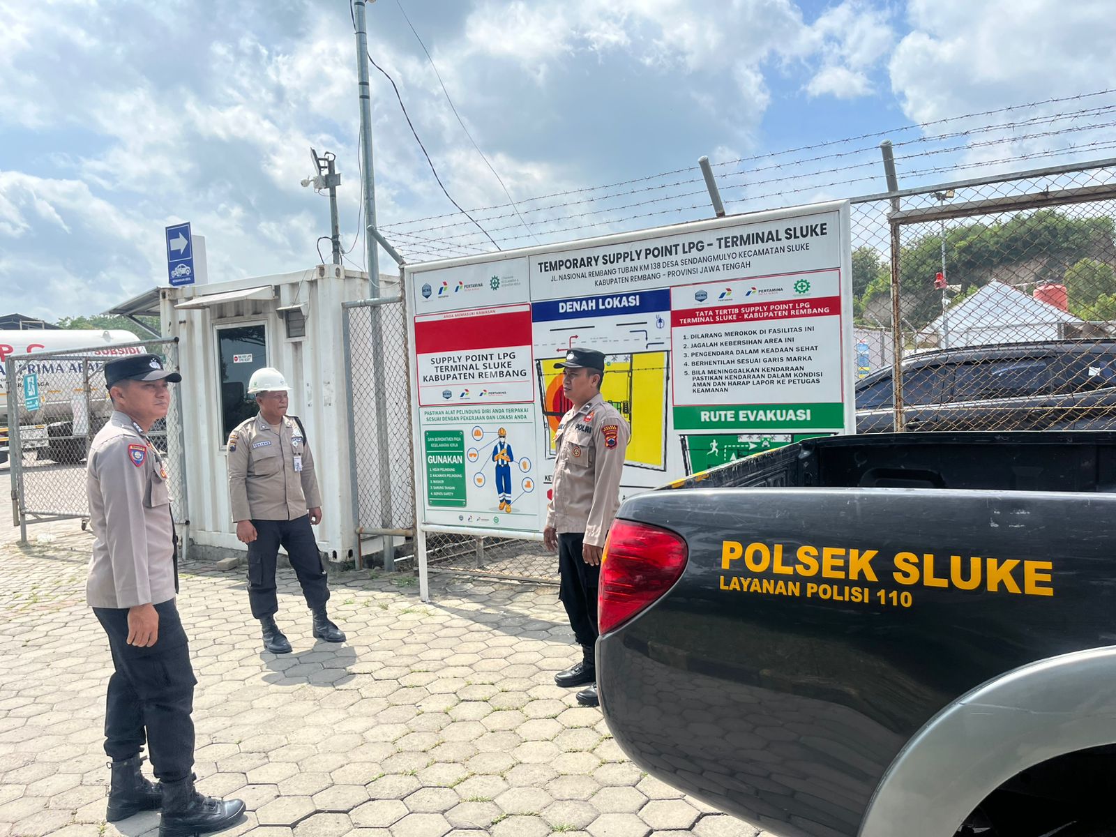 Patroli dipimpin dan dilaksanakan oleh personel Polsek Sluke, yakni Aipda Amin, Aipda Alfian, dan Brigpol Deni A. Dalam pelaksanaannya, petugas melakukan pemantauan situasi sekitar objek vital, berdialog dengan masyarakat setempat, serta memastikan tidak adanya potensi gangguan keamanan dan ketertiban masyarakat.
