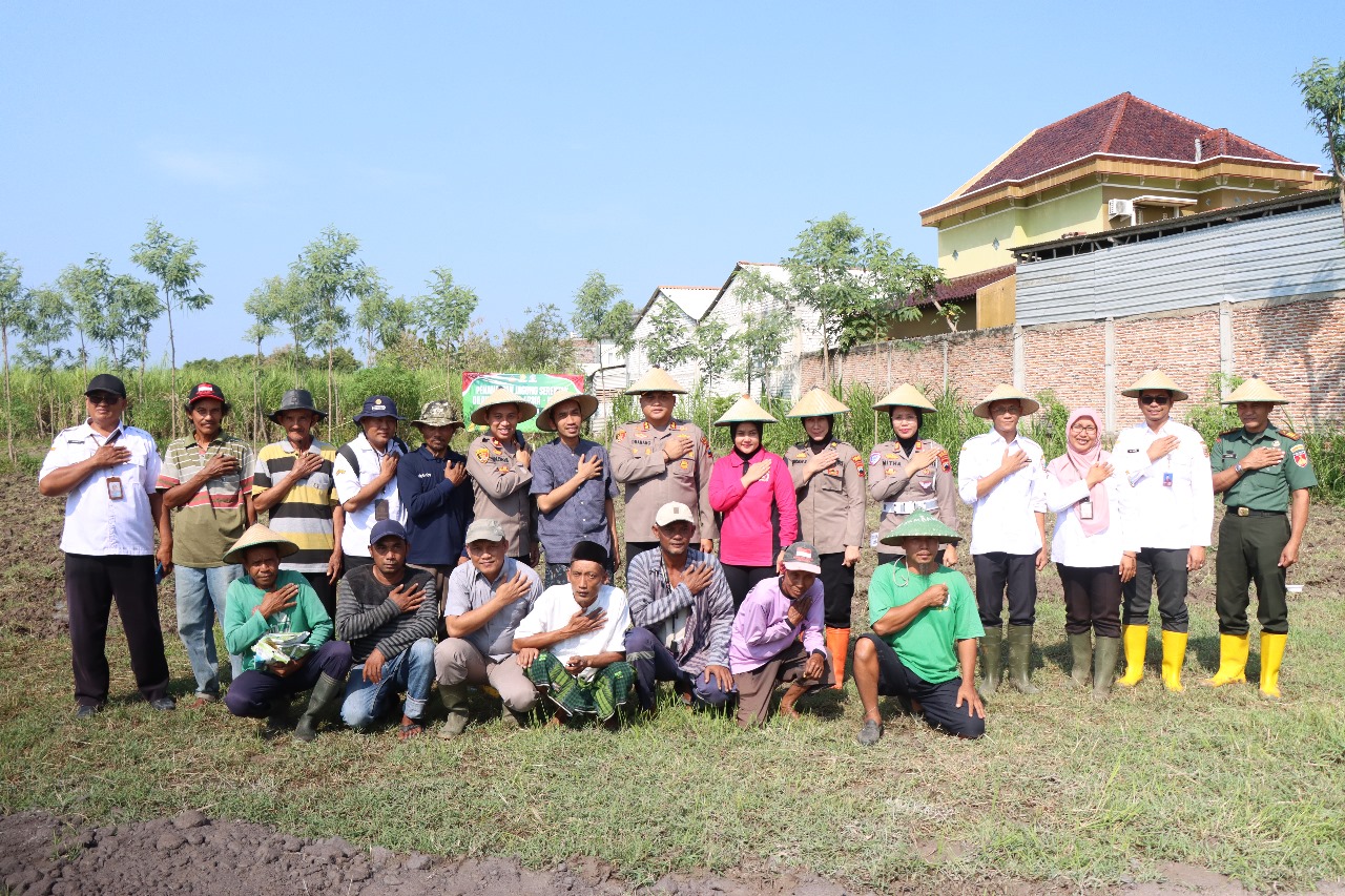 Penanaman jagung dilakukan bersama jajaran anggota Polres Rembang, para santri, serta perwakilan dari unsur pemerintahan desa dan kelompok tani setempat.