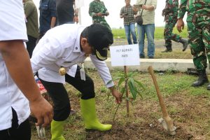 Satgas TNI Manunggal Membangun Desa (TMMD) Reguler ke-128 Kodim 0718/Pati melaksanakan penanaman pohon di sekitar lokasi sasaran TMMD di Desa Gunungpanti, Kecamatan Winong, Kabupaten Pati, Rabu (22/4/2026). Kegiatan ini merupakan bagian dari rangkaian pembukaan TMMD ke-128 sekaligus sasaran nonfisik yang bertujuan menjaga keseimbangan ekosistem, mencegah erosi, serta menciptakan lingkungan yang hijau dan sehat bagi masyarakat. Sejumlah unsur Forum Koordinasi Pimpinan Daerah Kabupaten Pati turut hadir dalam kegiatan tersebut, bersama Komandan Kodim 0718/Pati Letkol Arm Timotius Yogi, M.Han, perwakilan organisasi perangkat daerah, Camat Winong, Pemerintah Desa Gunungpanti, serta warga setempat yang berpartisipasi aktif. Komandan Kodim 0718/Pati Letkol Arm Timotius Yogi, M.Han selaku Dansatgas TMMD ke-128 menegaskan, penanaman pohon menjadi bentuk komitmen TNI AD dalam menjaga kelestarian lingkungan sekaligus memberikan edukasi kepada masyarakat tentang pentingnya merawat alam. “Penanaman pohon ini bukan hanya simbolis, tetapi merupakan investasi jangka panjang. Kami berharap pohon-pohon yang ditanam hari ini dapat memberikan manfaat bagi lingkungan dan menjadi warisan berharga bagi generasi mendatang,” ujarnya. Sementara itu, Kepala Desa Gunungpanti, Suwawi menyampaikan apresiasi atas kepedulian Satgas TMMD yang tidak hanya berfokus pada pembangunan infrastruktur, tetapi juga memperhatikan aspek lingkungan. “Kami sangat berterima kasih kepada TNI, khususnya Satgas TMMD, yang telah membantu membangun desa kami sekaligus menjaga kelestarian lingkungan. Semoga kegiatan ini membawa manfaat besar bagi masyarakat,” katanya. Melalui kegiatan tersebut, Desa Gunungpanti diharapkan semakin hijau dan nyaman, serta mampu mendukung pembangunan berkelanjutan. Sinergi antara TNI, pemerintah daerah, dan masyarakat dinilai menjadi kunci dalam mewujudkan desa yang maju, mandiri, dan berwawasan lingkungan.