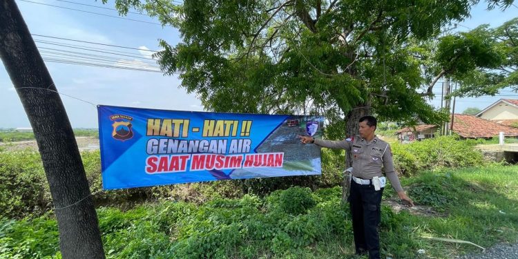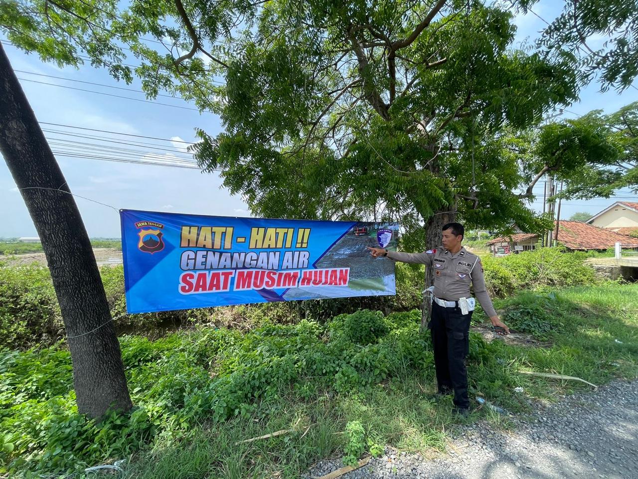 Satlantas Polres Rembang Pasang Rambu Himbauan Genangan Air di Jalur Pantura Purworejo