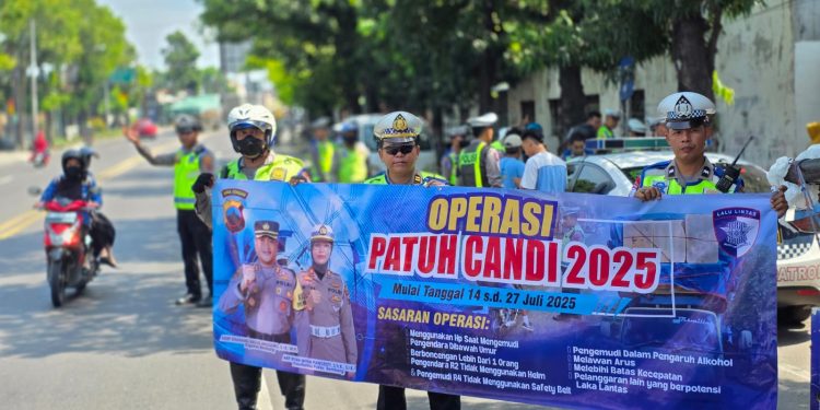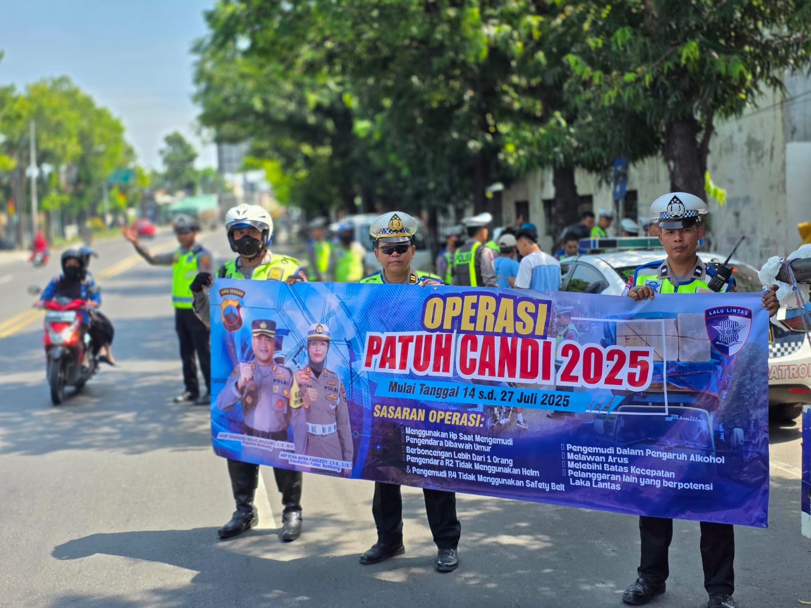Dalam kegiatan ini, petugas membentangkan banner, membagikan leaflet dan memberikan edukasi kepada pengendara mengenai pentingnya tertib berlalu lintas serta sasaran prioritas dalam Operasi Patuh Candi 2025, seperti tidak memakai helm, melawan arus, dan pengendara di bawah umur.