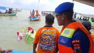 Puncak acara ditandai dengan pelarungan miniatur kapal yang berisi kepala kambing ke tengah laut sebagai simbol persembahan adat dan harapan keselamatan serta keberkahan bagi para nelayan saat melaut. Setelah prosesi selesai, rombongan nelayan kembali ke bantaran sungai dengan tertib.