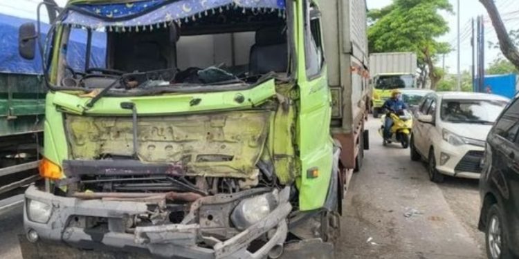 “Sesampainya di lokasi kejadian, diduga pengemudi truk tronton Wingbox Siba Surya kurang berkonsentrasi sehingga menabrak bagian belakang truk Wingbox Fuso yang berada di depannya,” jelas Apri.